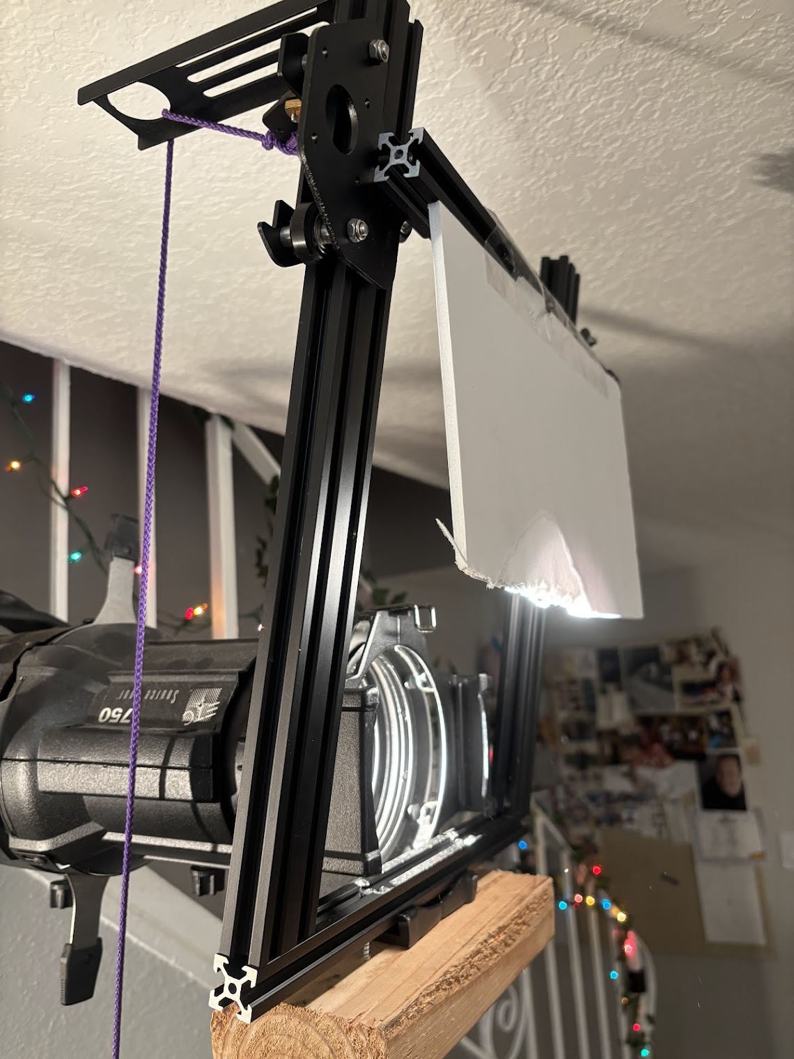 I began by grabbing the aluminum extrusions originally used for the printer's gantry and test-fitting them onto a 50-degree Source Four barrel.